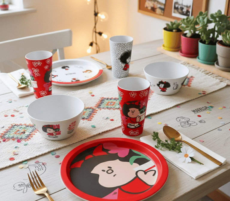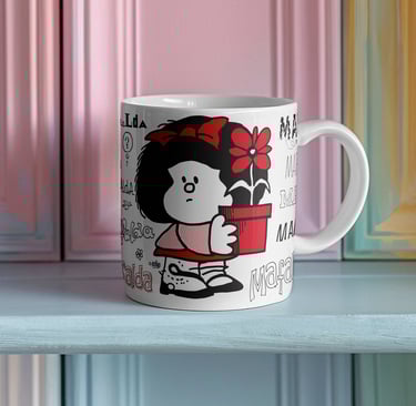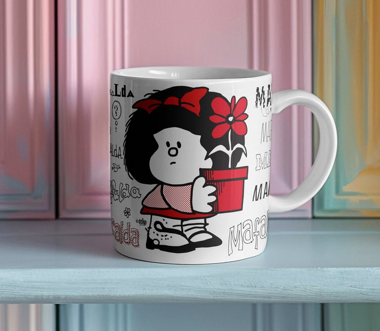 Las tazas y manoplas tienen diseños únicos que alegran mis mañanas, ¡perfectas para fans de Mafalda!