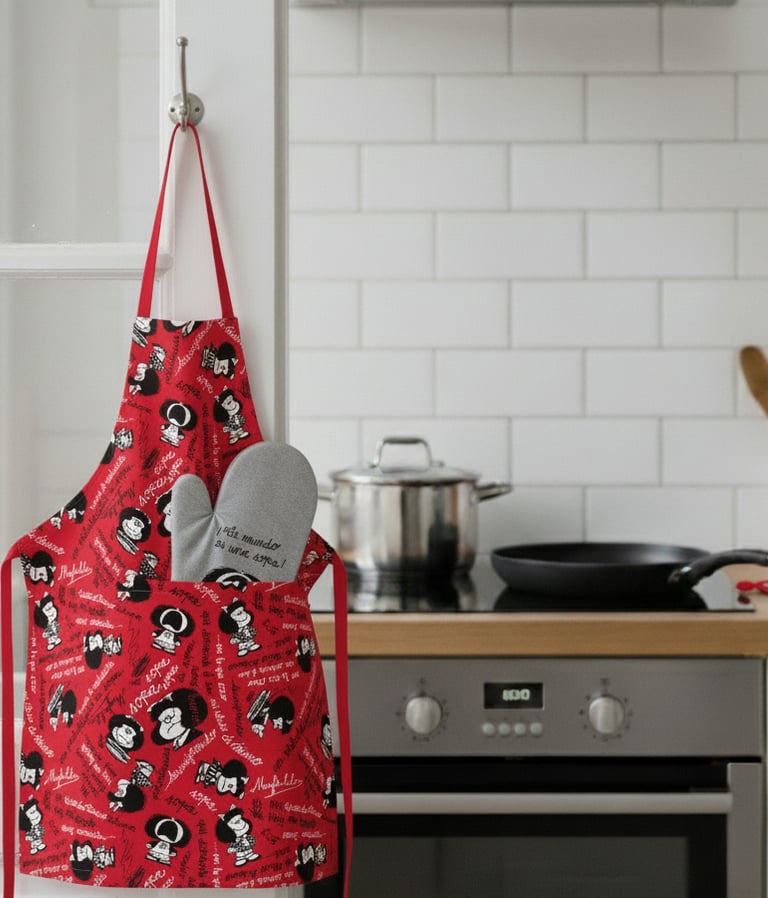 Los delantales de Mafalda son tan divertidos como prácticos, ¡me encantan para cocinar con estilo!